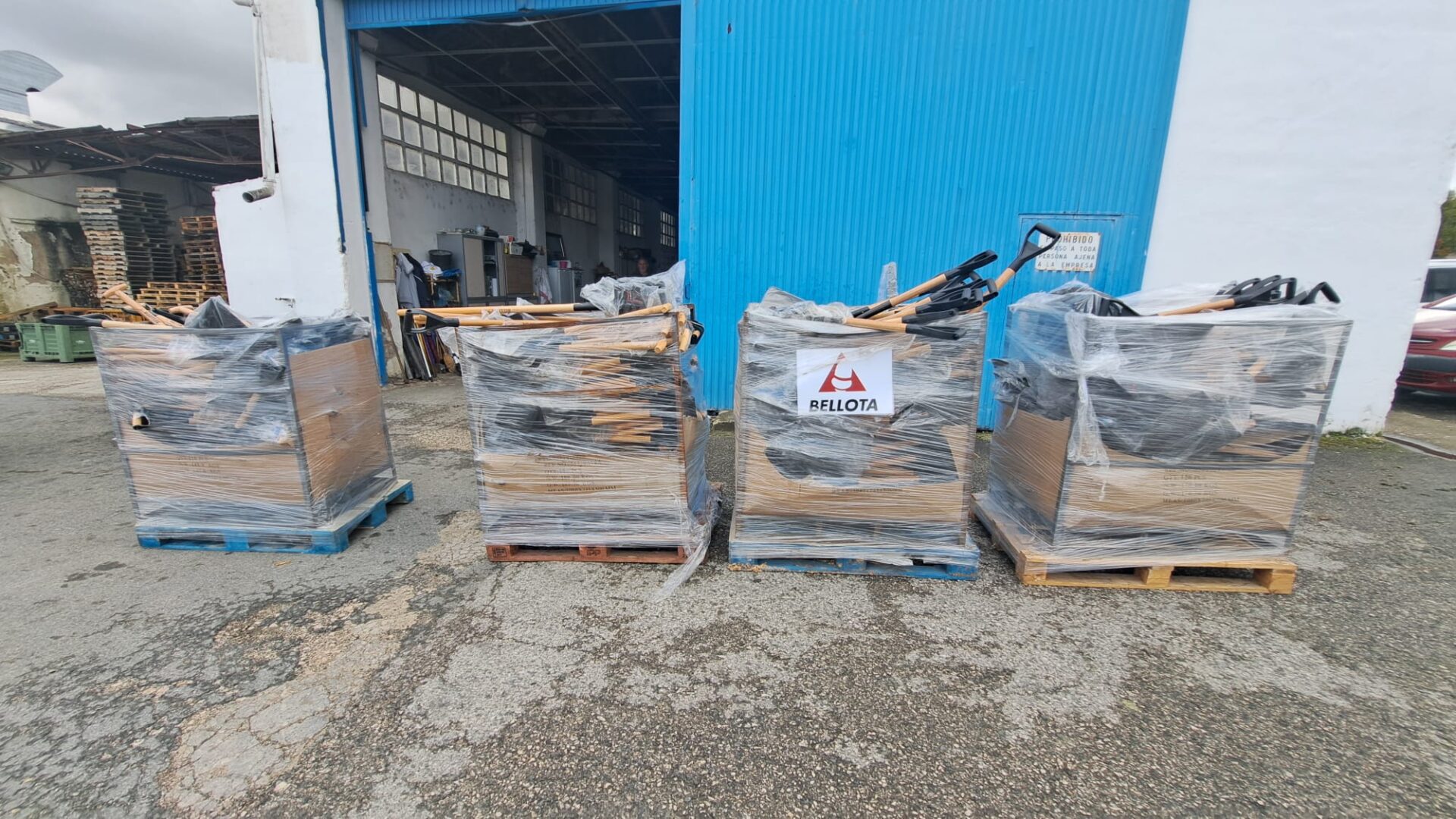 El día 9 de octubre de 2024 hemos recibido en nuestras instalaciones de Echavacoiz una nueva donación de la empresa Bellota Herramientas S.A. de Legazpi con el contenido de 4 palés con palas.