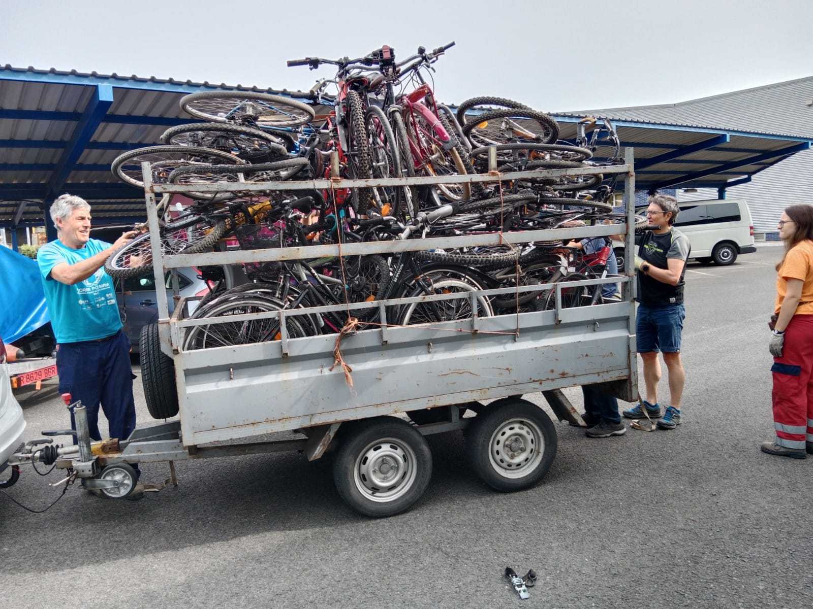 El lunes 8 de Mayo de 2023, un grupo de voluntarios/as se han desplazado hasta San Sebastián para recoger una donación de 300 bicicletas, que una vez cargadas y tras el viaje de vuelta se han almacenado en nuestras instalaciones para ser revisadas, puestas a punto y posteriormente ser enviadas a distintos destinos.