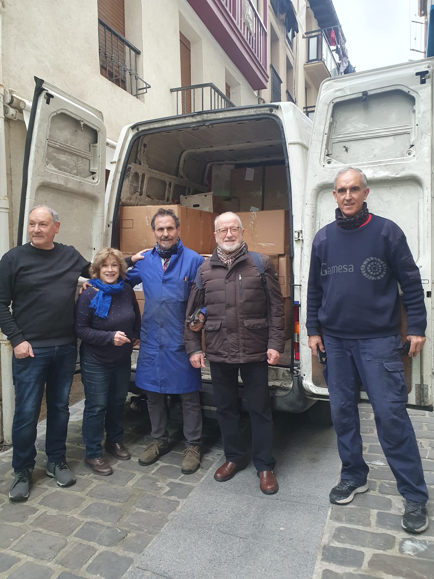 El día 22 de enero de 2025 hemos recogido de nuevo, en Getaria, una donación de Jone y Joxi, amigos de Ayuda Contenedores, consistente en varias cajas con diversos materiales, especialmente zapatos nuevos, también calcetines, raquetas, etc.