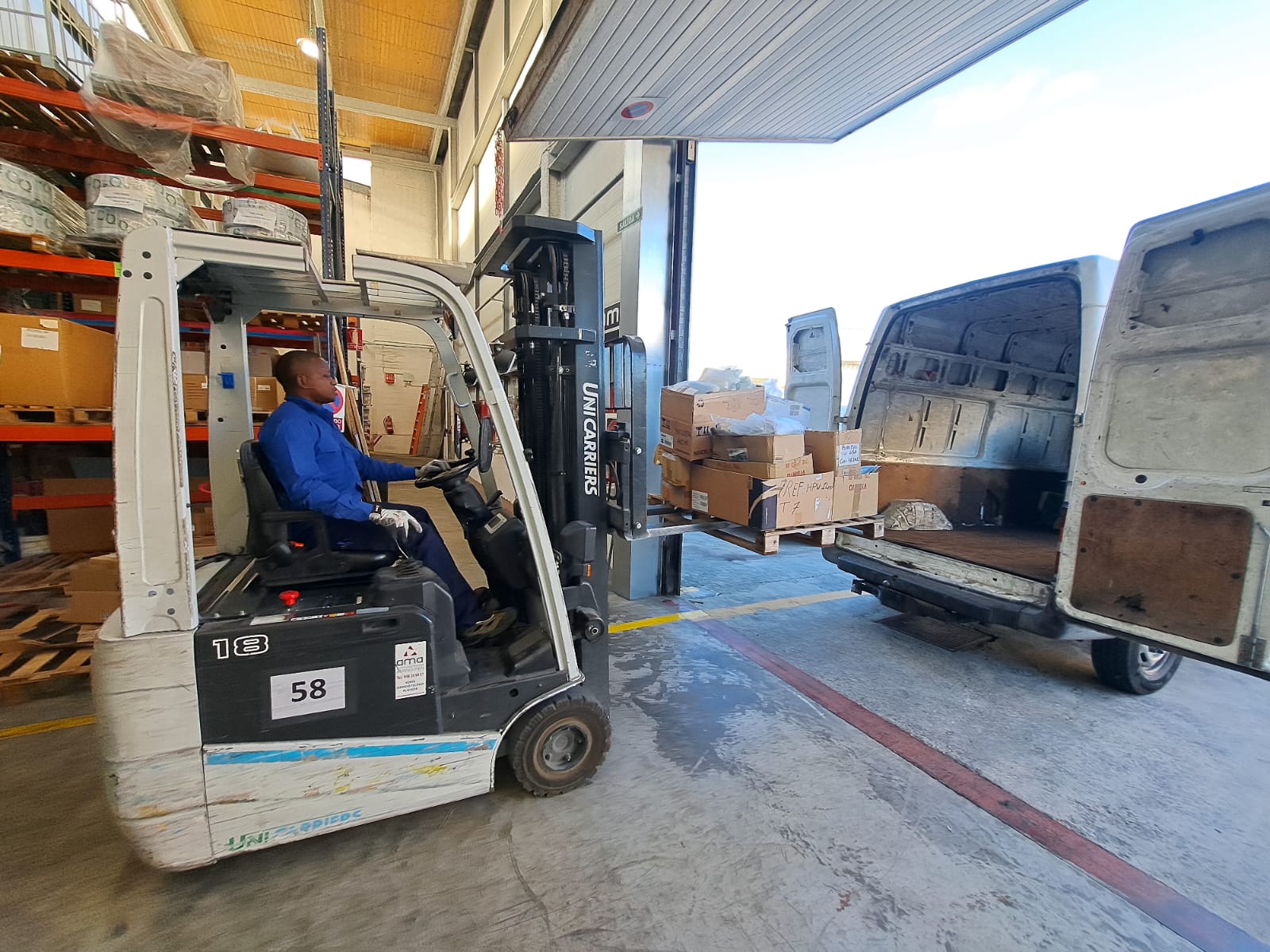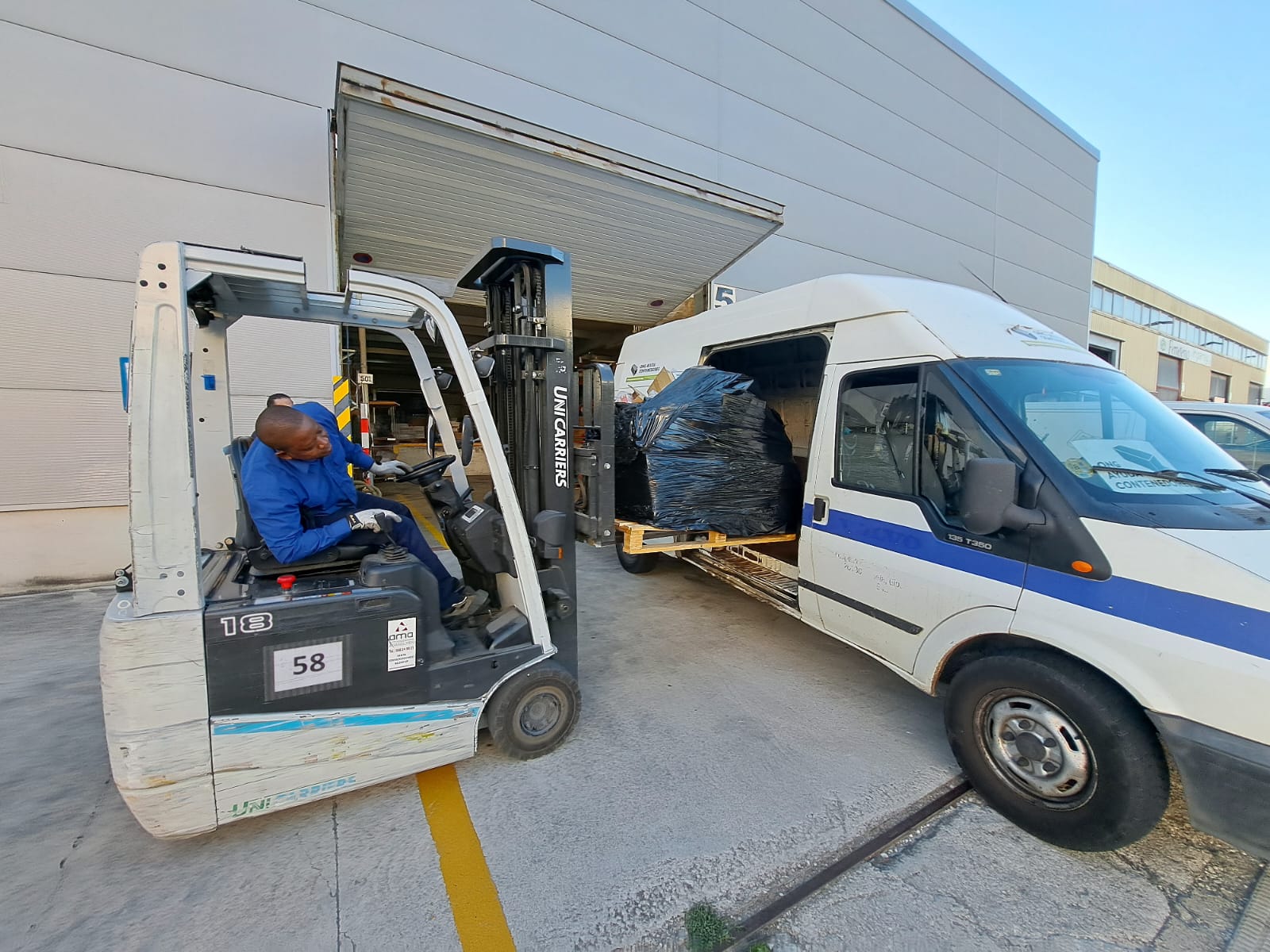 El día 10 de octubre de 2025 hemos recogido una donación de la Ferretería Irigaray de Pamplona consistente en 4 palés de material diverso.