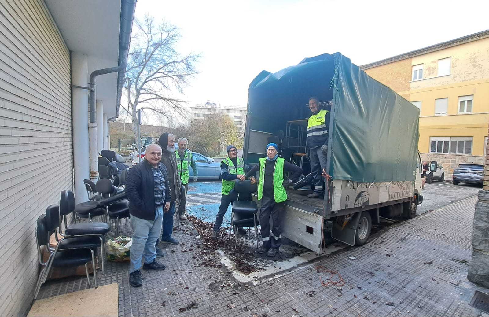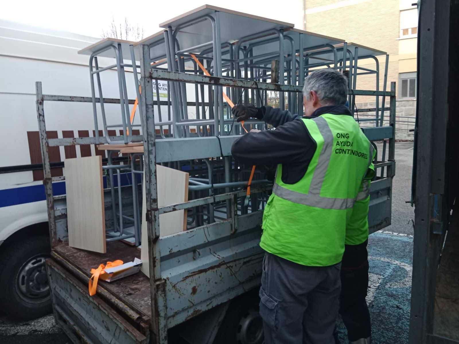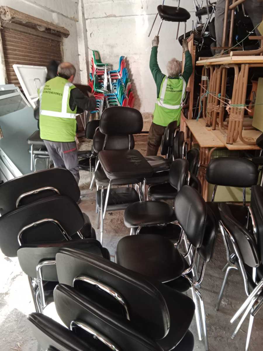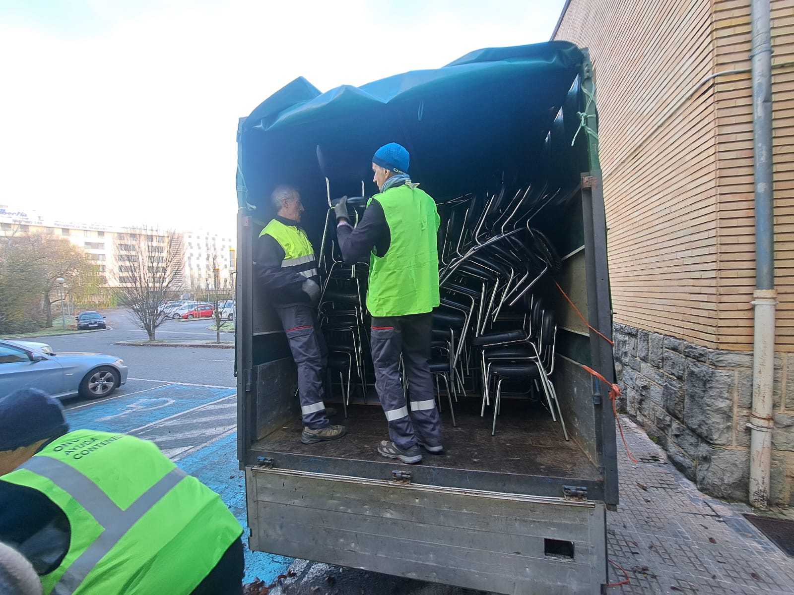 En la mañana del día 22 de diciembre de 2025, un grupo de voluntarios/as nos desplazamos hasta el aulario de la UPNA en el edificio de El Sario, de la Universidad Pública de Navarra, para hacernos cargo de una donación de 167 sillas y 95 pupitres procedentes de la Escuela de Idiomas.