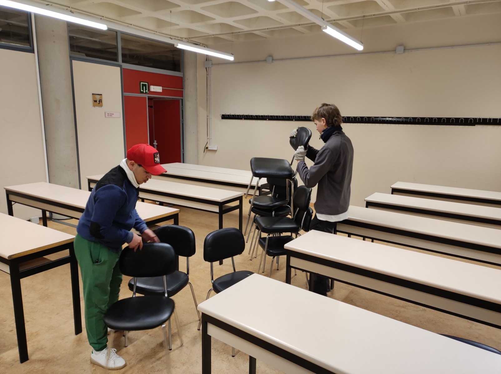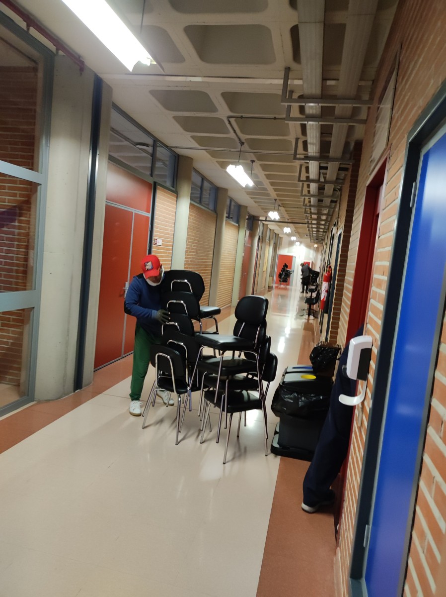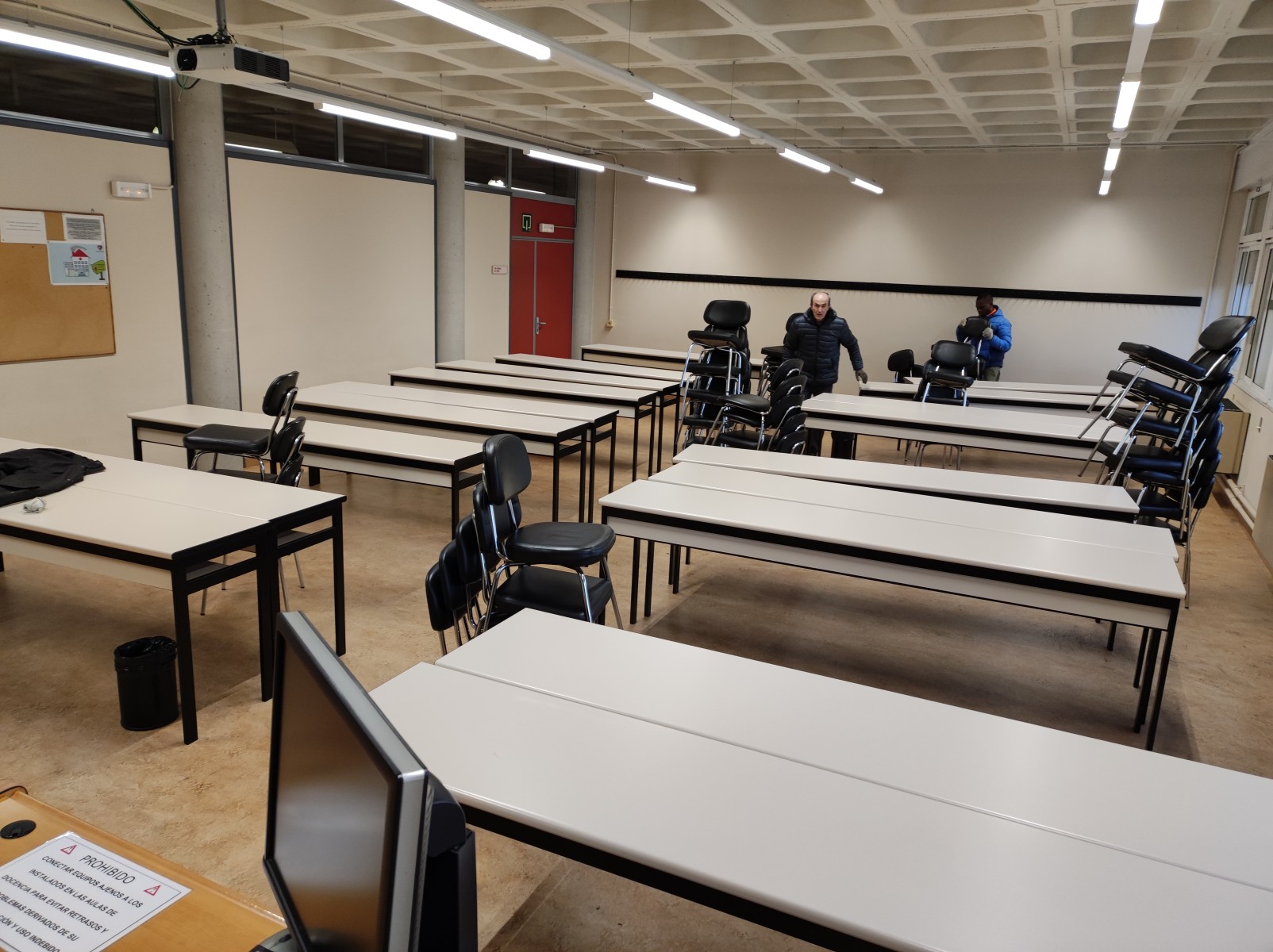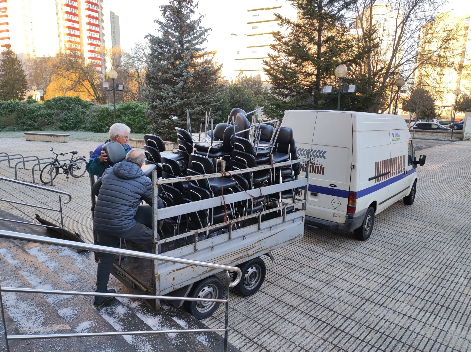 En la mañana del día 27 de diciembre de 2023, un grupo de voluntarios/as nos desplazamos hasta el aulario de la UPNA y Edificio de El Sario, y otro grupo hasta la Escuela de Enfermería de la   Universidad Pública de Navarra para hacernos cargo de una donación de sillas de aula. Después de recoger la donación de las 685, las  trasladamos hasta nuestras instalaciones en Echavacoiz.