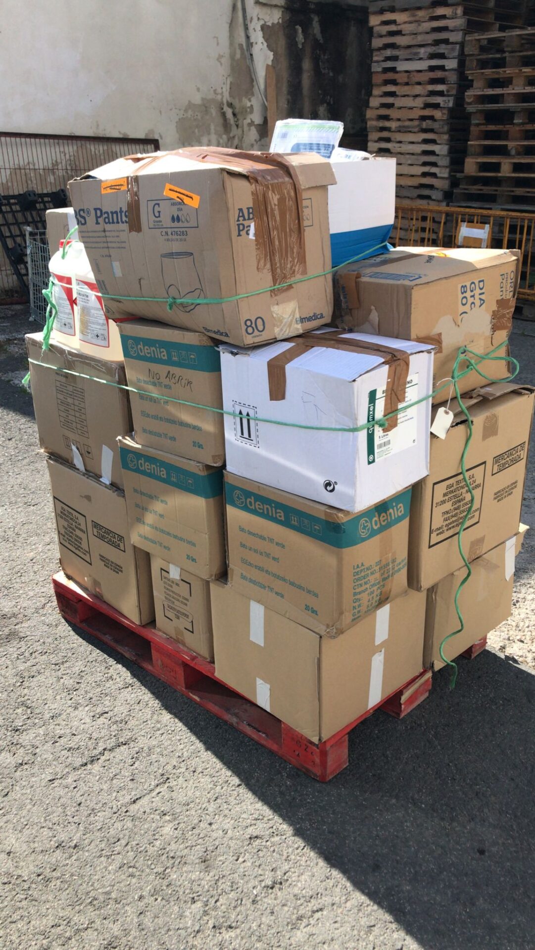 El día 1 de julio de 2024 hemos recogido en el Colegio Público de Educación Especial Andrés Muñoz Garde de Pamplona, una donación de un palé de material hospitalario con 8 cajas de batas desechables, 1 caja de buzos desechables, 3 cajas de gafas y pantallas, 1 caja de gel hidroalcohólico y 3 cajas de mascarillas.