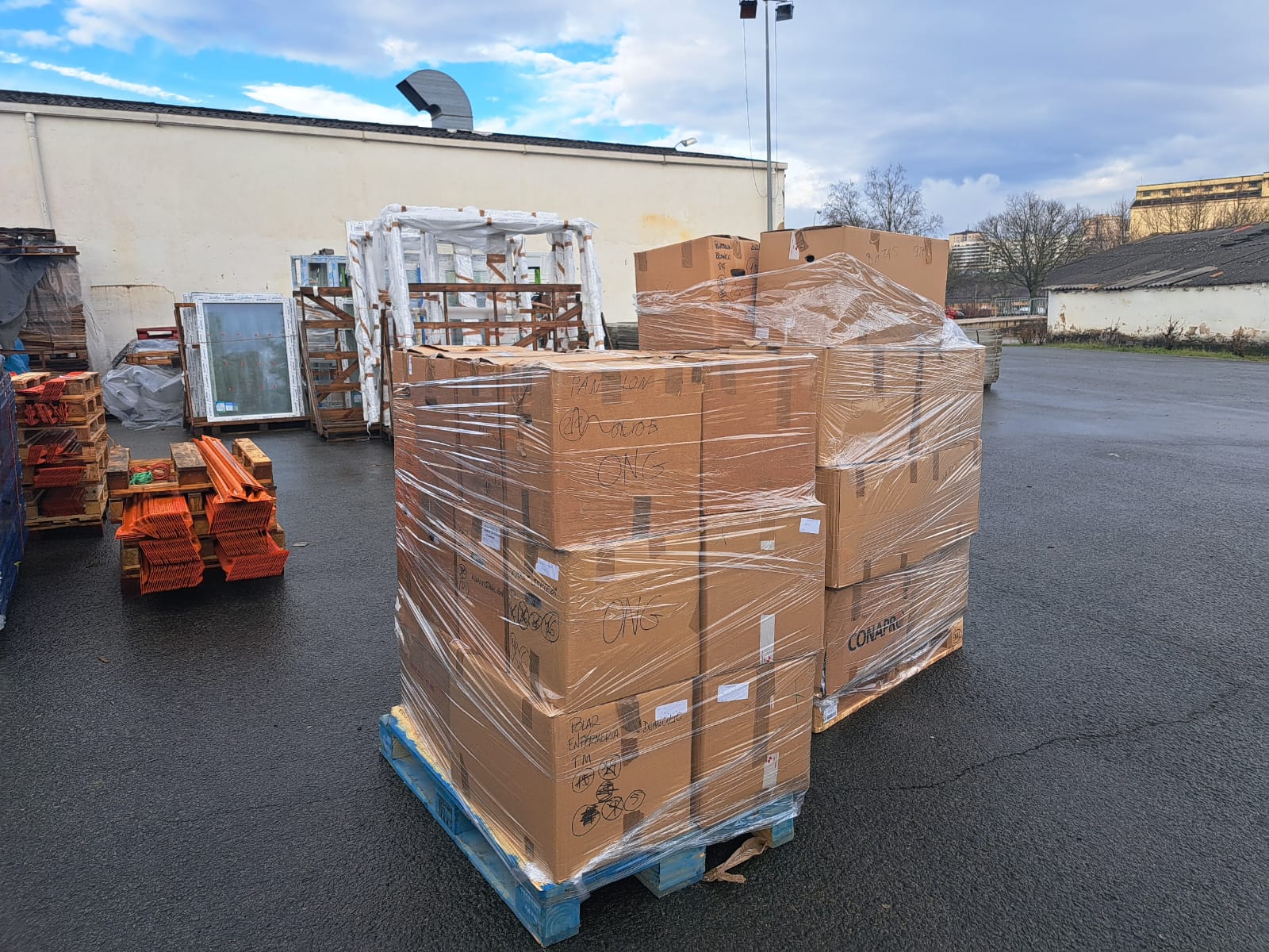El día 11 de febrero de 2026 hemos recibido en nuestras instalaciones de Echavacoiz una donación del Hospital Universitario de Navarra. Hemos recibido 2 palés de ropa trabajo