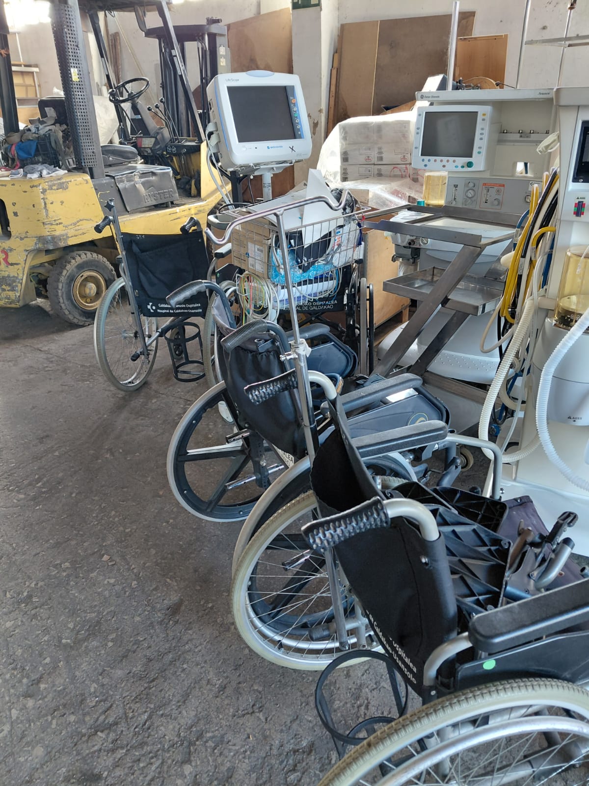 El día 29 de diciembre de 2025 un equipo de voluntarios se ha desplazado hasta Galdakao para recoger otra donación procedente del Hospital Universitario Galdakao-Usansolo, consistente en 34 cajas de batas, 8 cajas de gorros, 1 caja de jeringuillas, 4 sillas de ruedas, 3 respiradores, 1 equipo constantes vitales, 3 mesas de ambulatorio, 1 camilla.