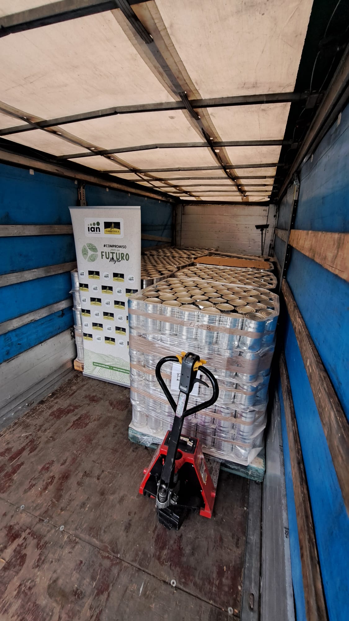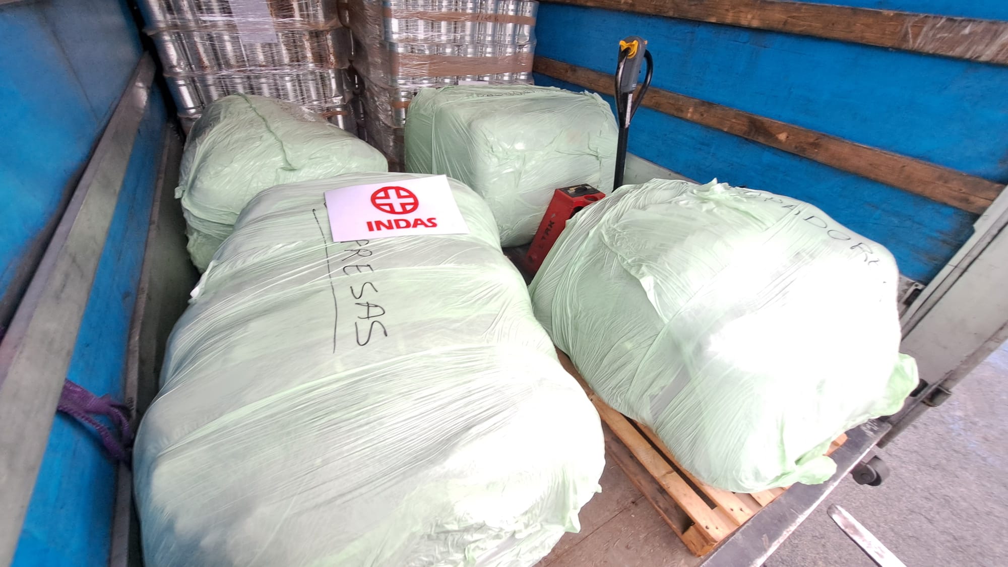 8 palés de comida de Carretilla GRUPO ALIMENTARIO IAN                                                                                    2 pales de pañales, 2 fardos de compresas y 2 fardos de empapadores de Laboratorios INDAS