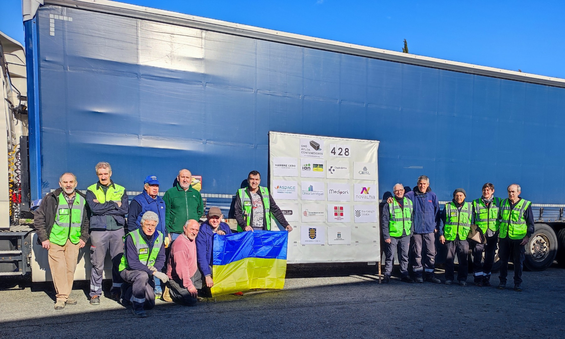 El viernes 23 de enero de 2026 se ha cargado de nuevo un enorme camión tráiler con destino a Ucrania. Es el número 428 de nuestra serie histórica. Un tráiler cargado con alimentos y  con diversos materiales de higiene, pañales, compresas, vendas, sillas, camillas, etc.