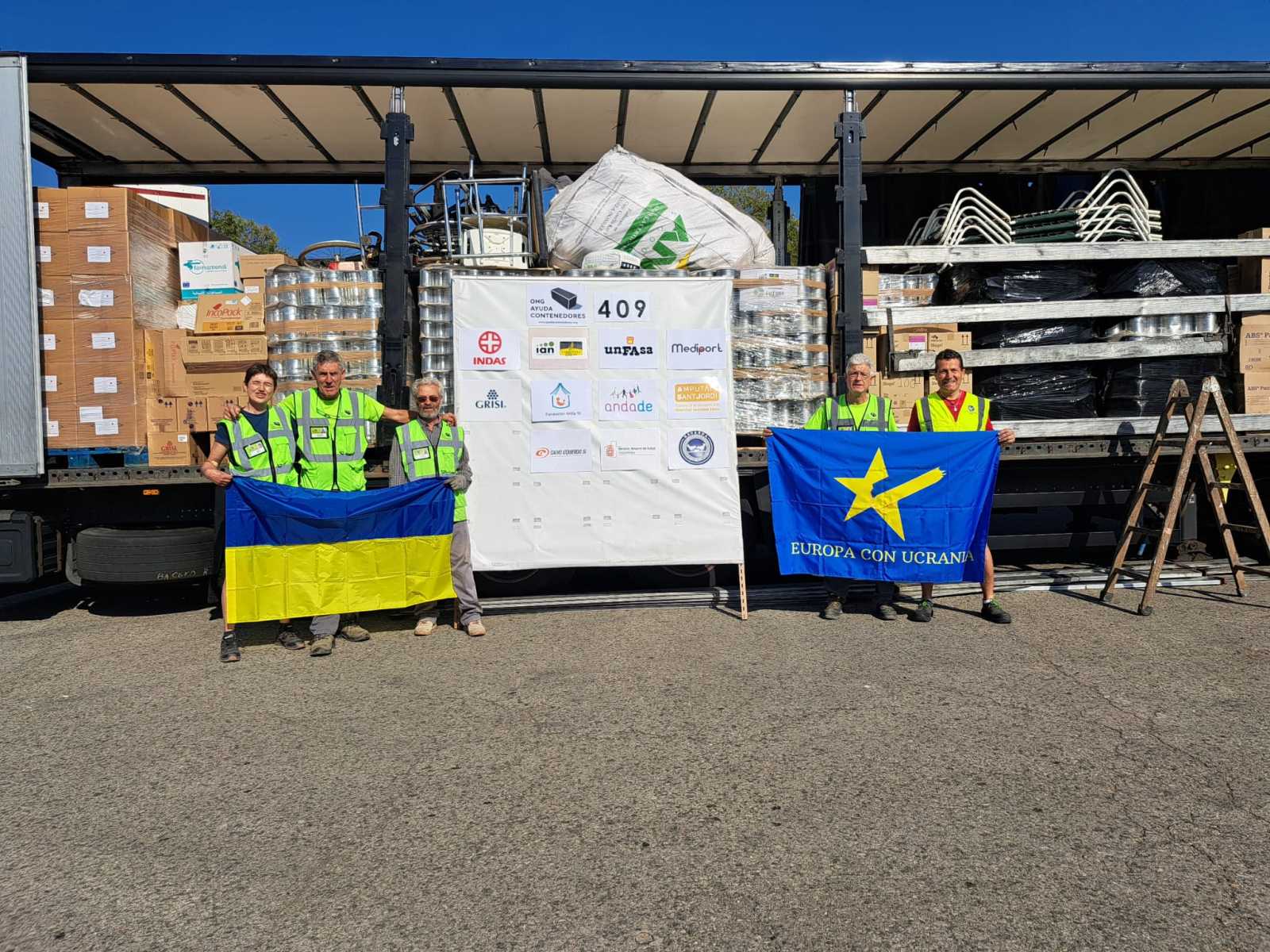El sábado 23 de agosto de 2025 se ha cargado de nuevo un enorme camión tráiler con destino a Ucrania. Es el número 409 de nuestra serie histórica. Un tráiler cargado con alimentos y  con diversos materiales de higiene, pañales, compresas, vendas, sillas, camillas, etc.