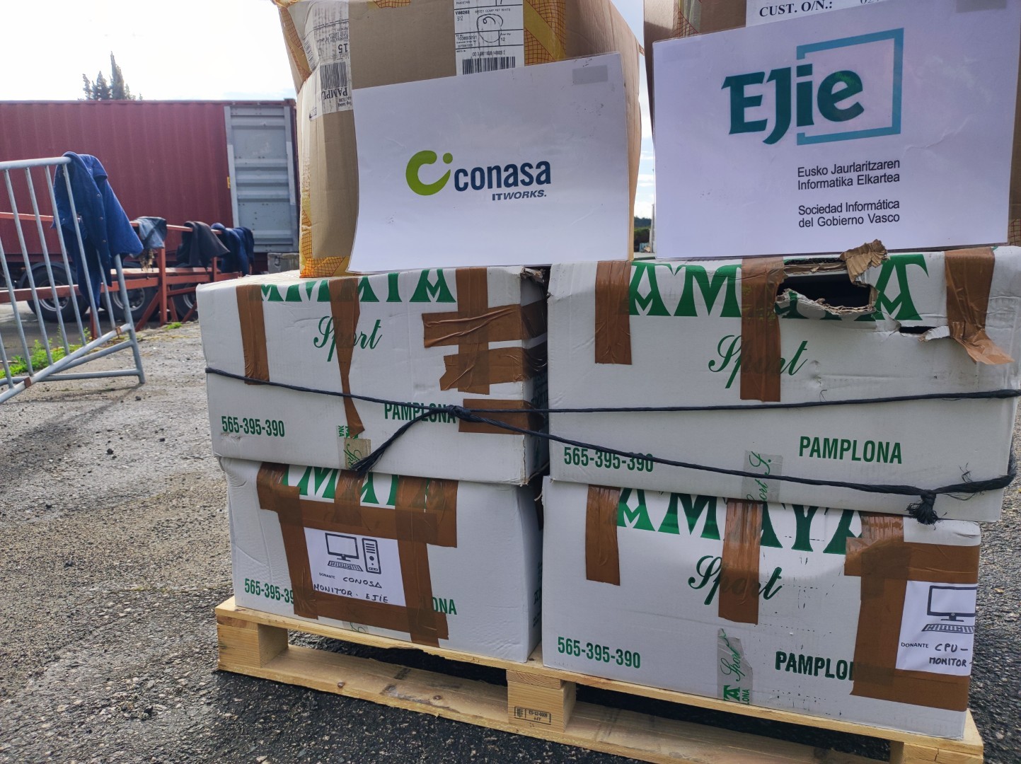Lo gestiona y financia la Asociación AMAP en un envío compartido con Ayuda Contenedores. Fundamentalmente se han cargado alimentos (conservas, arroz, pasta, galletas y harina) y también herramientas, ordenadores, juguetes, materiales de higiene, porterías, ropa y calzado.