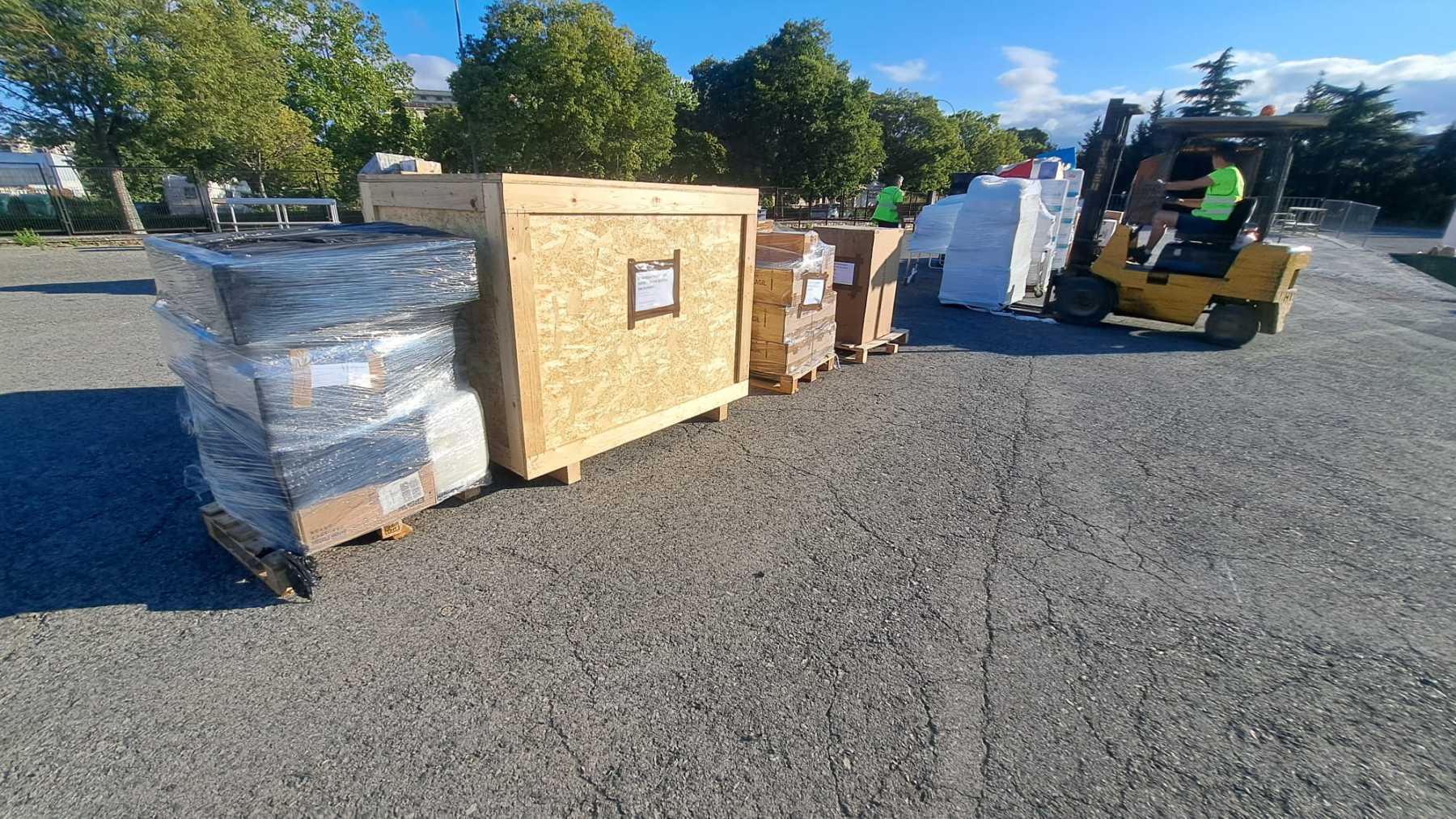 Se han cargado diferentes materiales para las Hermana Misioneras Clarisas por parte de la Fundación Milla 91. También cocina industrial, alimentos, máquinas de coser, ordenadores, estanterías, libros, etc.