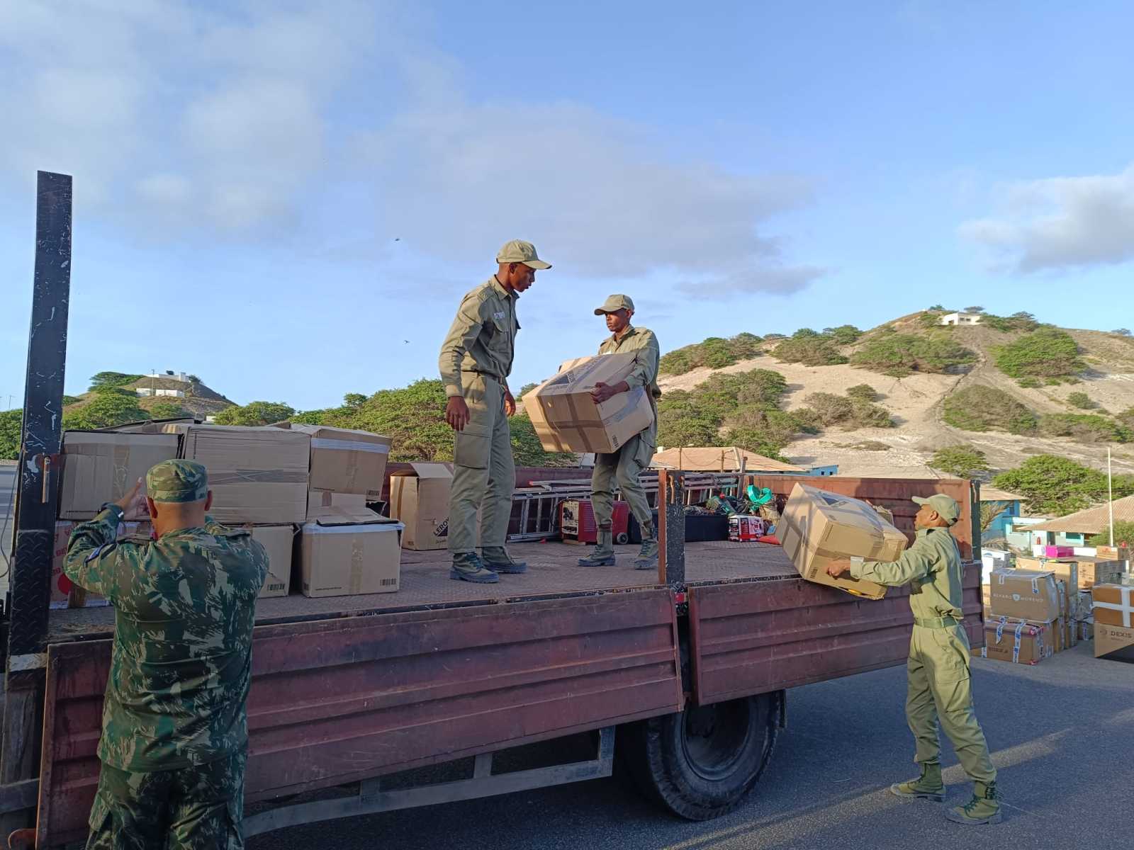 El día 15 de octubre de 2025 nos llegan las buenas noticias y un excelente reportaje fotográfico de la descarga y preparación para el reparto de los materiales del contenedor de ayuda humanitaria que enviamos a Cabo Verde el sábado 30 de agosto de 2025.