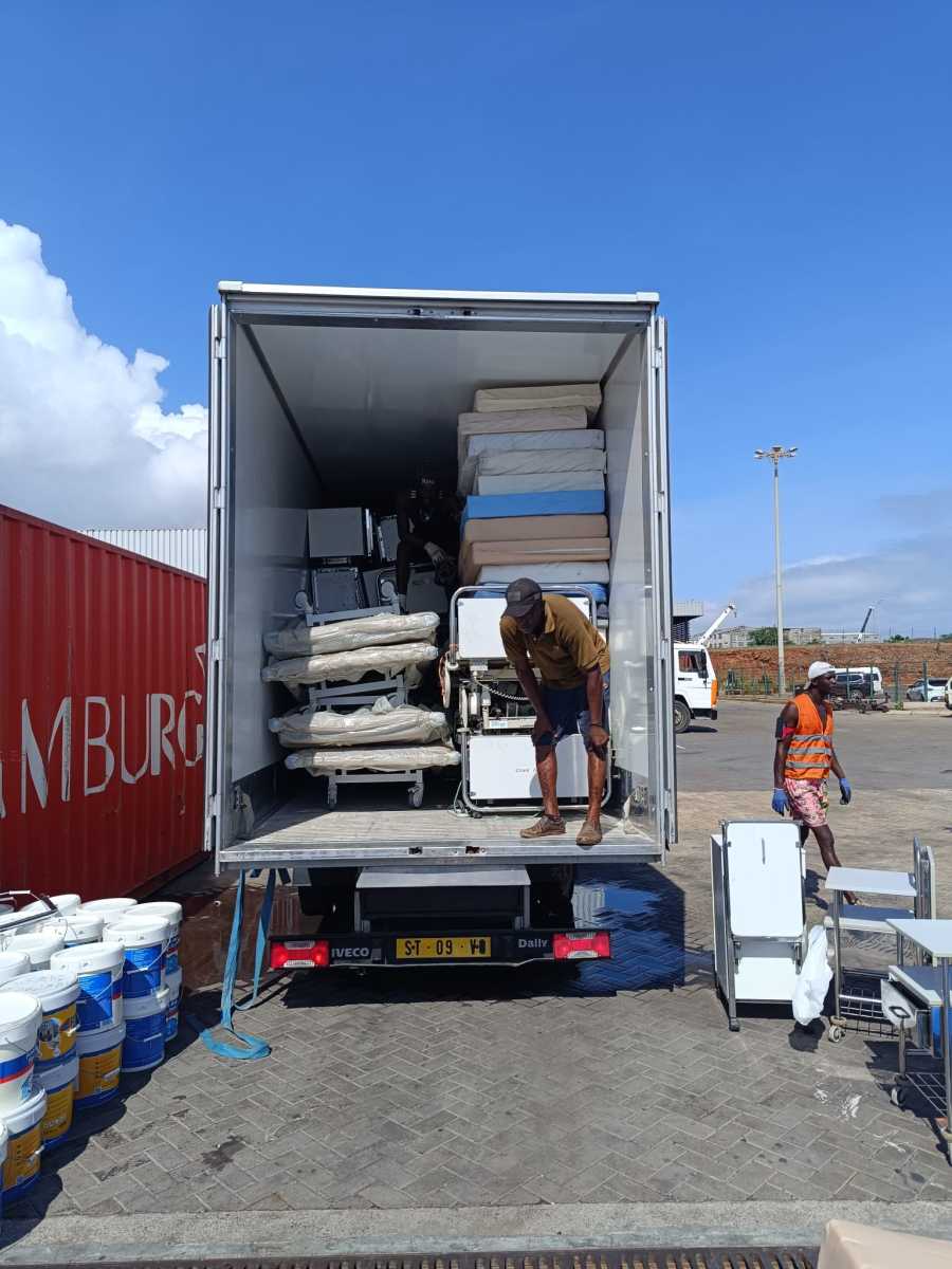 En este contenedor de cargaron materiales de construcción, pintura, cemento, material de limpieza e higiene, calzado de trabajo, herramientas diversas, material hospitalario, etc.