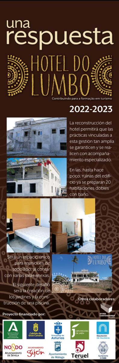 Junto al reportaje de fotos que nos han llegado de la descarga, incluimos dos fotos preciosas de dos carteles informativos de la Escuela de Hostelería y Turismo de Lumbo, donde reconocemos el buen uso y aprovechamiento de los materiales que les van llegando en los sucesivos envíos.