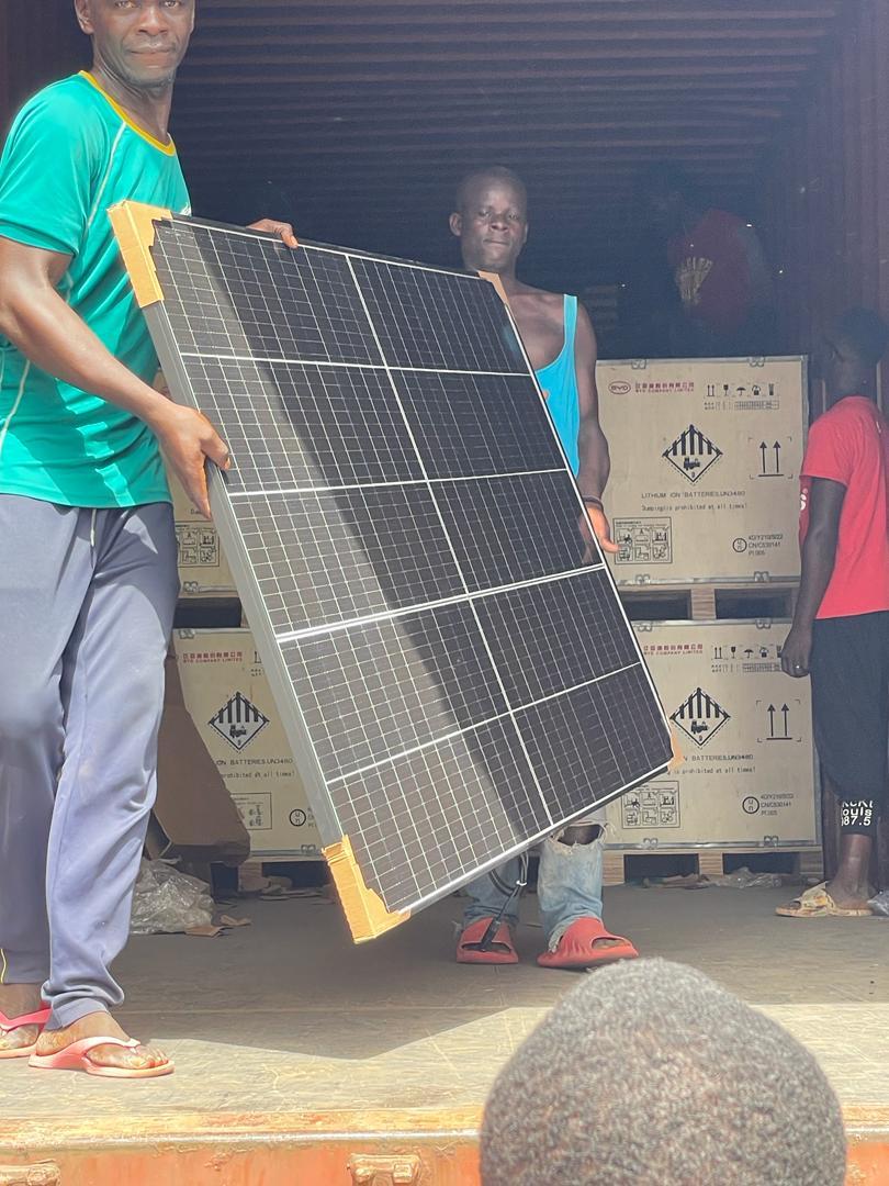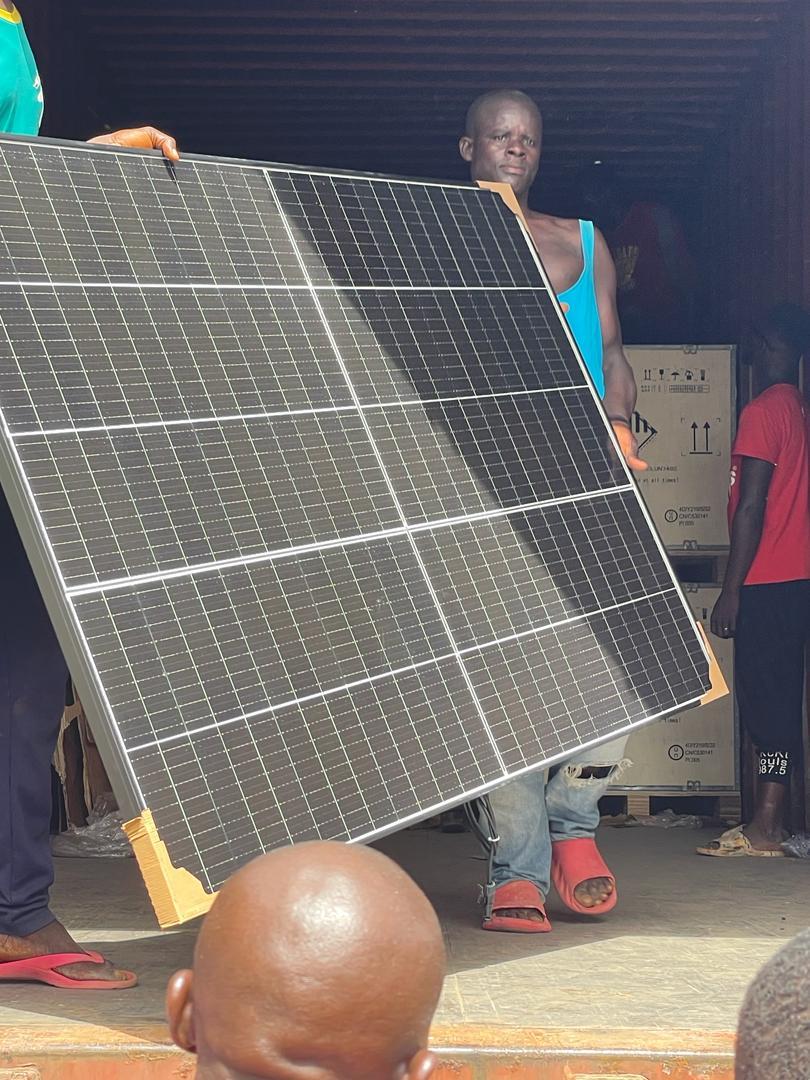 Este contenedor se cargó con material de la Fundación EKI para ser a destinado a 5 proyectos diferentes dentro del país. Como dice en su pagina WEB ( www.fundacioneki.org ) la Fundación EKI tiene un compromiso firme en impulsar la industria solar fotovoltaica local en África subsahariana. Sabiendo que el acceso a la energía es crucial y contribuye a una transformación estructural, la Fundación busca promover la creación de empleo y el fomento de la actividad económica a través del impulso de la industria solar local.