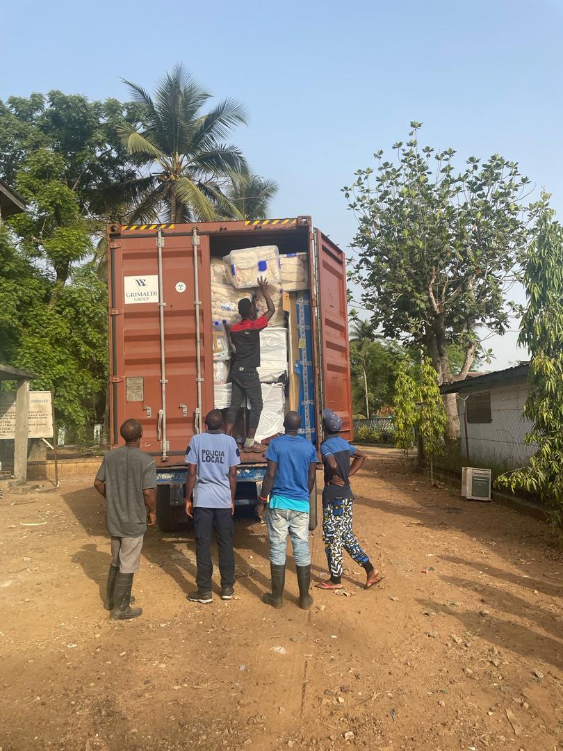 El día 4 de marzo de 2024 nos llega la excelente noticia y un precioso reportaje de fotos de la llegada y descarga del contenedor que enviamos a Sierra Leona el día sábado 13 de enero de 2024.