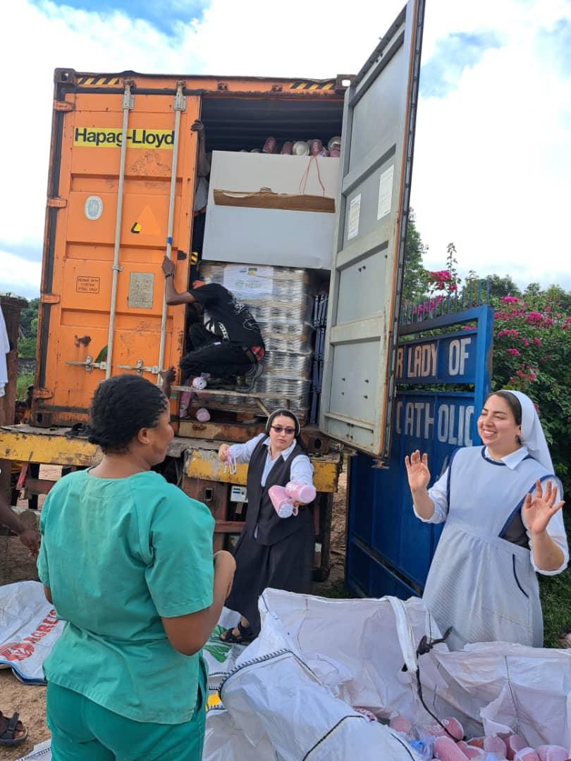 Se cargaron diferentes materiales para las Hermana Misioneras Clarisas por parte de la Fundación Milla 91. También cocina industrial, alimentos, máquinas de coser, ordenadores, estanterías, libros, etc.