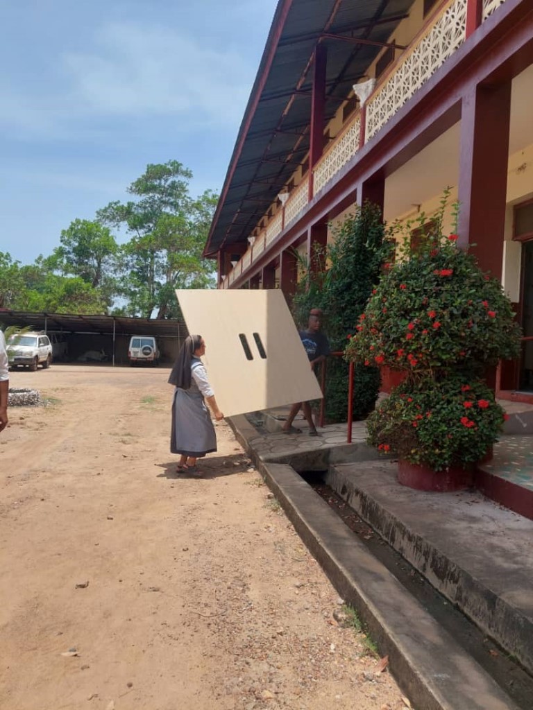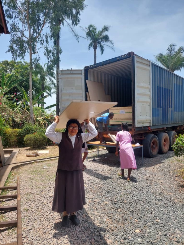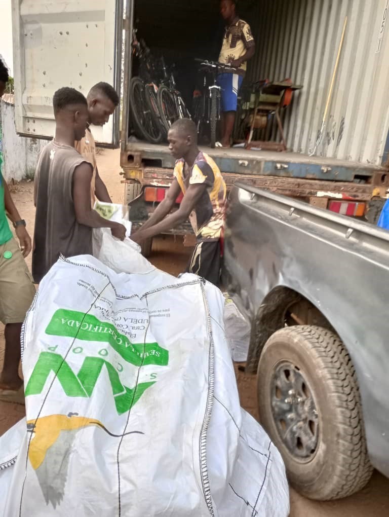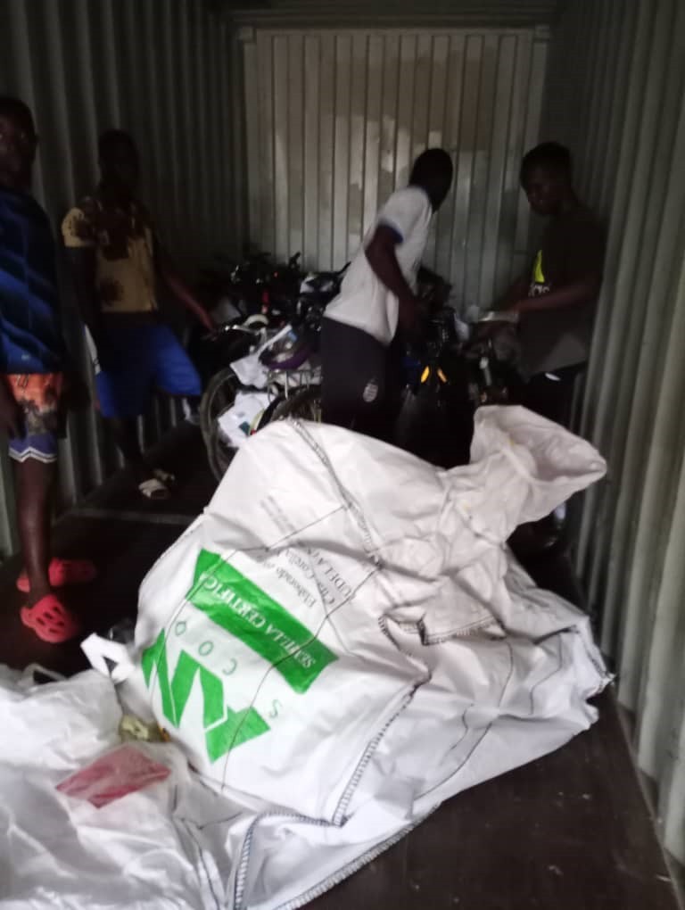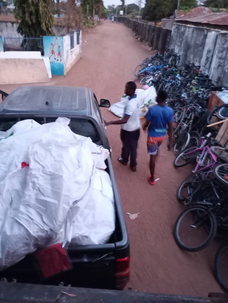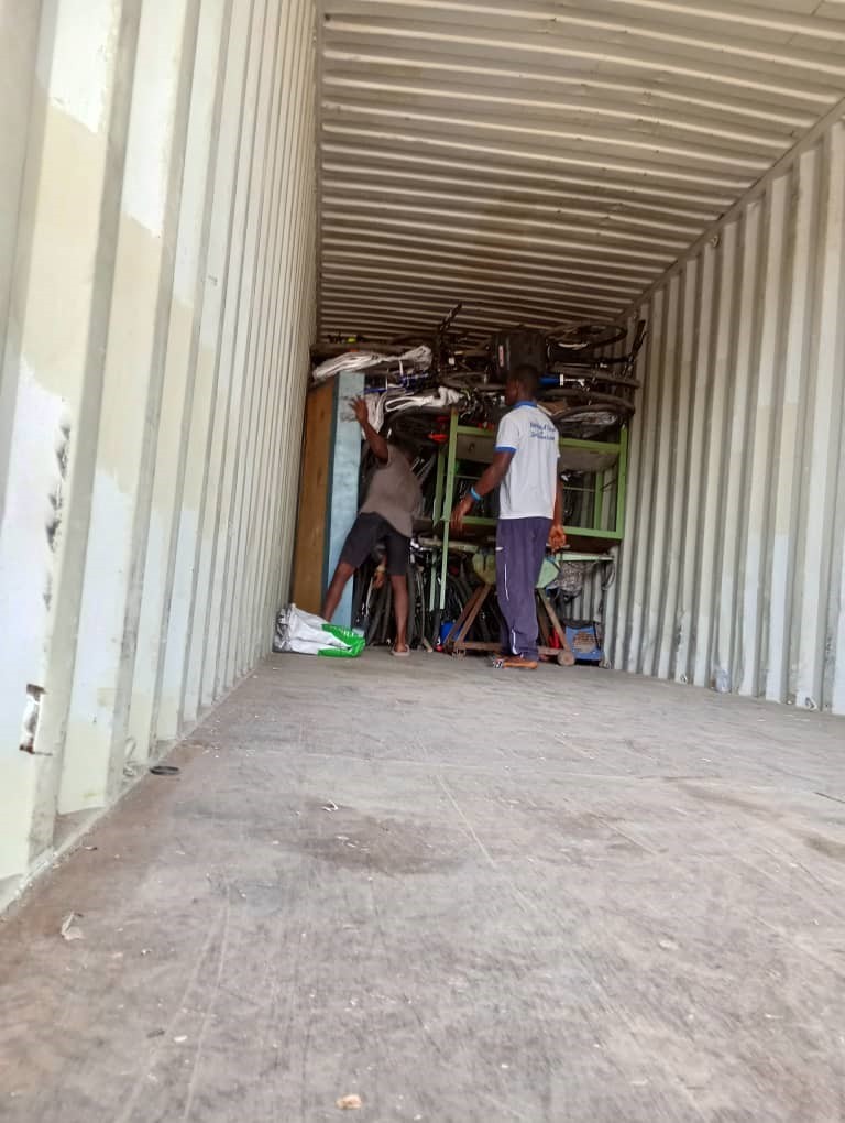 El día 27 de abril de 2024 nos llegan las excelentes noticias y un buen montón de fotos de la descarga del contenedor con destino Sierra Leona que se mandó 17 de Febrero de 2024.  Un envío compartido entre el Salesiano Antonio Gutiérrez para el que se ha cargó medio contenedor con bicicletas y materiales varios de carpintería, electricidad, herramientas, etc.,  y otro medio contenedor correspondiente a la Fundación Milla 91, que colabora con las Hermanas Misioneras de Santa Clara. Para esta ONG se envió mobiliario de diverso tipo, material sanitario, máquinas de coser y un montón de materiales más.