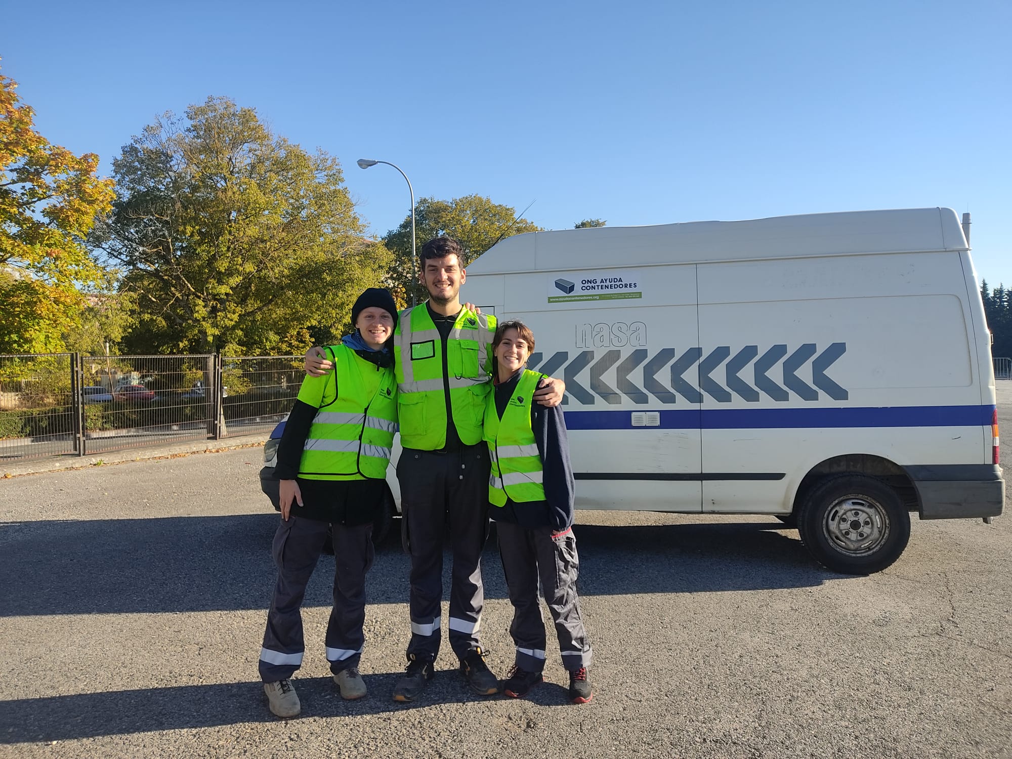 Federica, Levin and Manolis, the three young people from the European Solidarity Corps (ESC), are now fully integrated into our NGO and will be carrying out their volunteer activities until the end of June 2026. Since their arrival, they have been working alongside the other volunteers at the Ayuda Contenedores premises, sorting and preparing the countless materials that arrive at our facilities every day. They are also learning how to repair bicycles, computers and other equipment, and how to prepare other simple devices that we collect and refurbish to send to different countries.